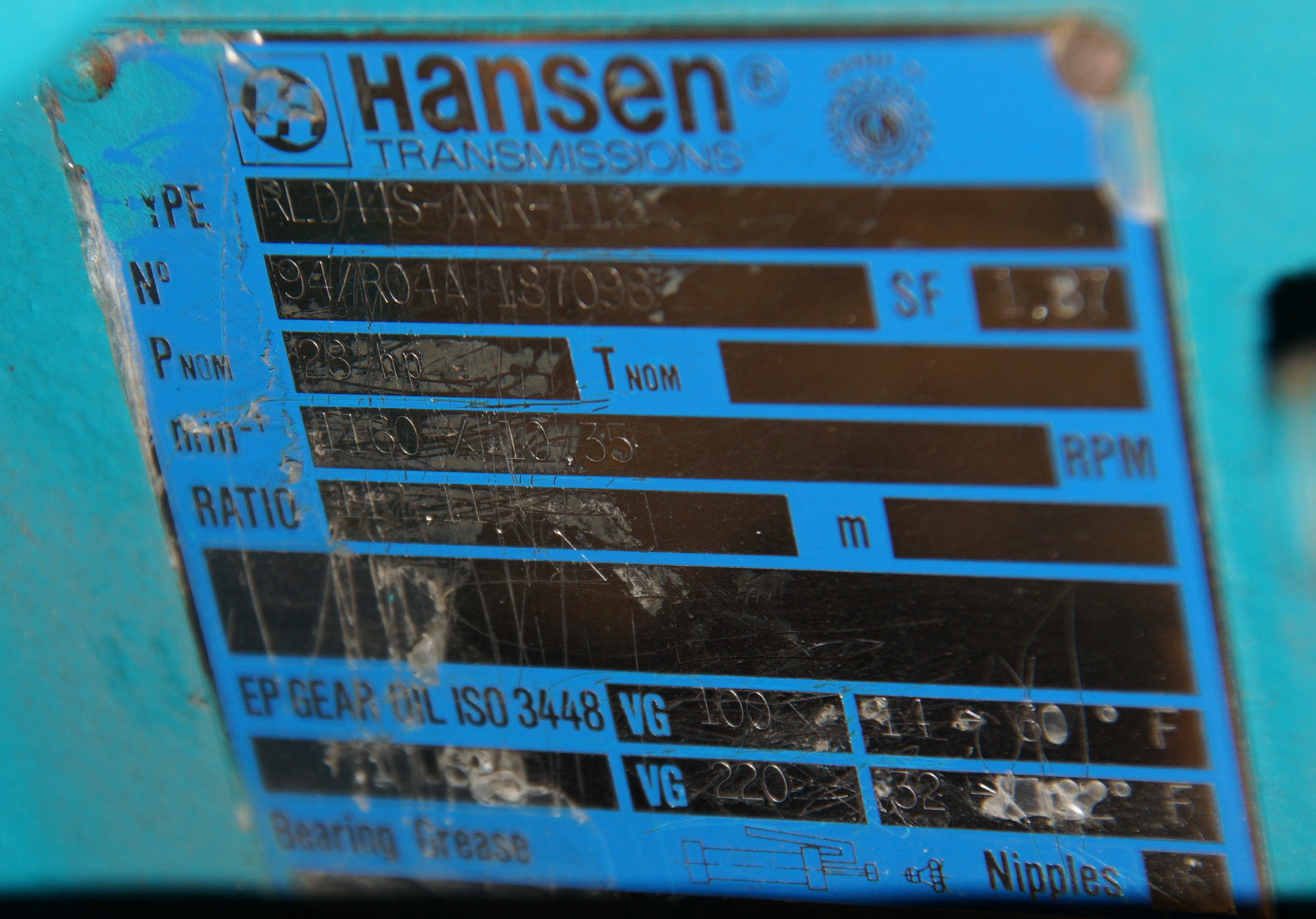 Description: Hansen Gear Box NEW RLDS44S-ANR-112 N – 94/R04A 187098 SF 1.87 Pnom – 28HP min-1160×10.35