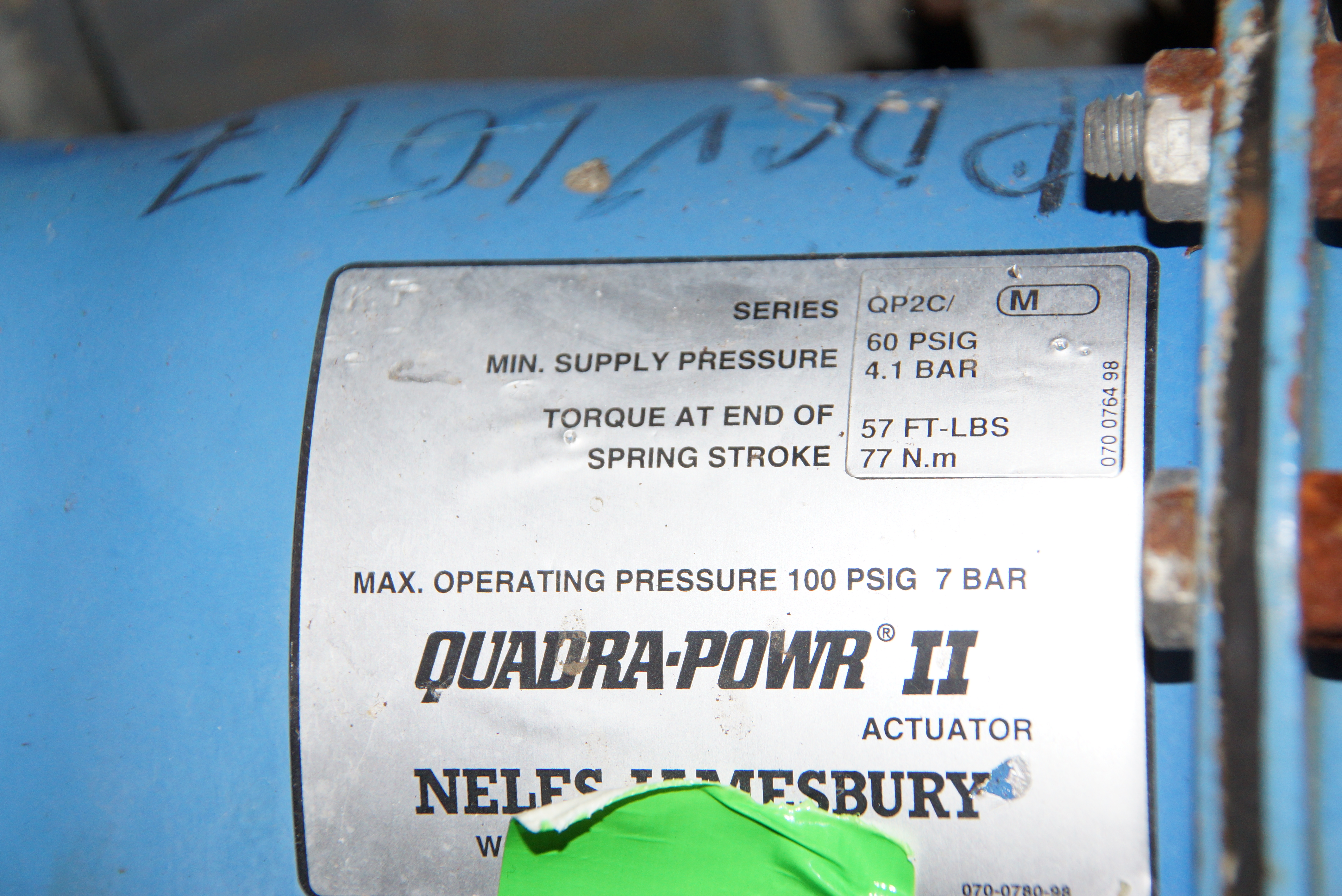 Description: Jamesbury Ball Valve 4=150 316SS Quadra-powr 2 Actuator Series QP2C, Min Supply Pressure 60 PSIG 4.1 BAR Torque AT END OF SPRING STROKE 57FT-LBS 77N.m